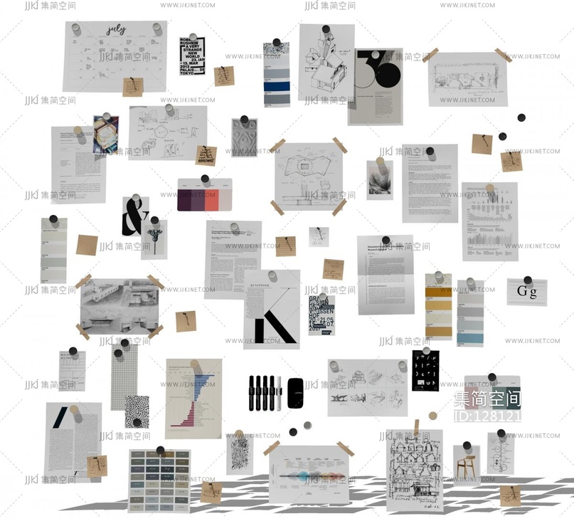 现代设计公公司办公便签纸,白板软木 su草图模型下载 [模型ID:128121]