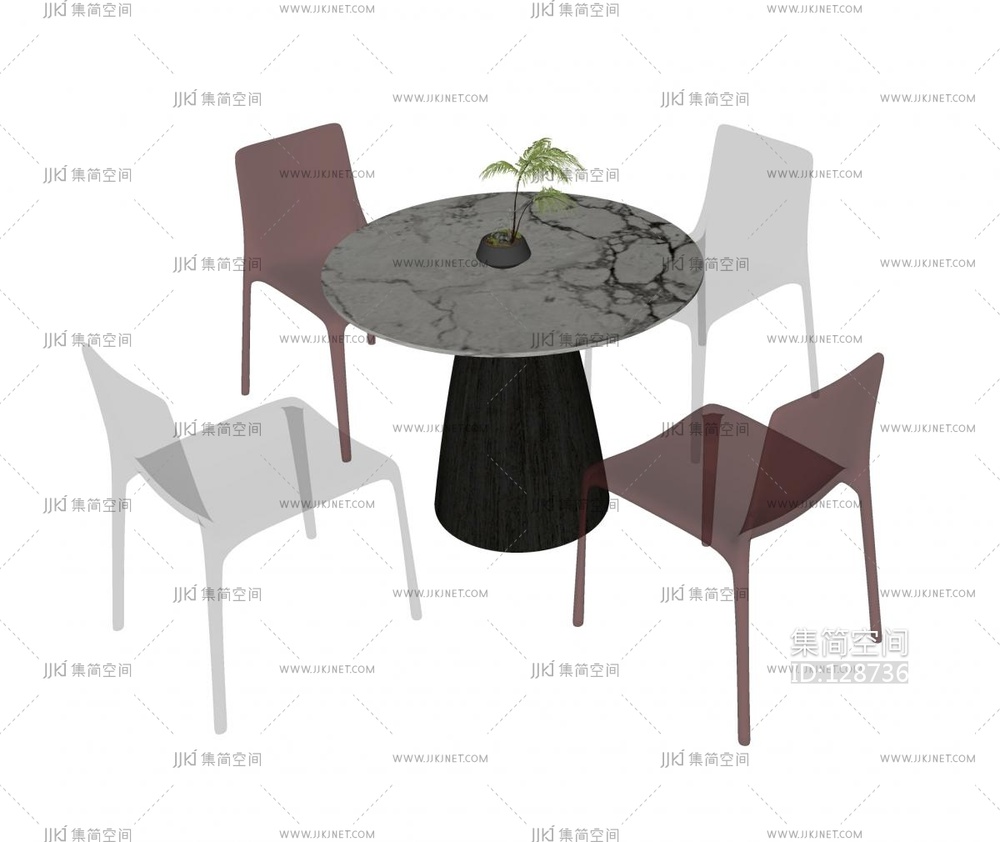 现代圆形休闲桌椅 su草图模型下载 [模型ID:128736]