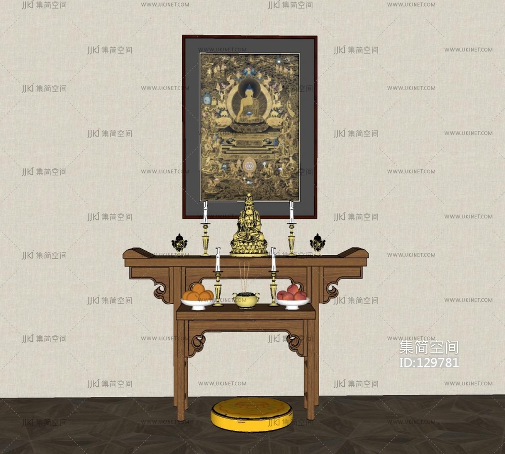 新中式佛堂 su草图模型下载 [模型ID:129781]