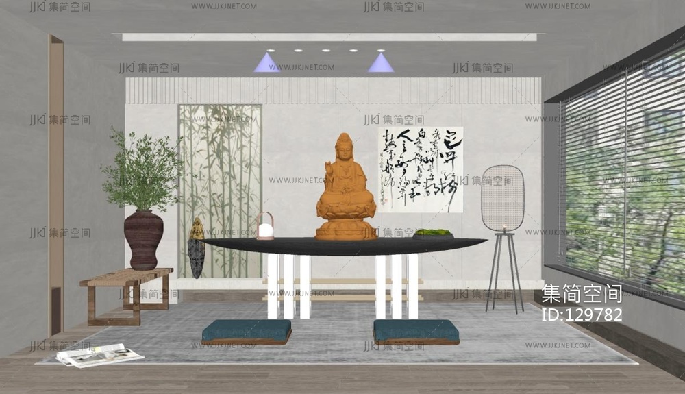 新中式家居佛堂 su草图模型下载 [模型ID:129782]