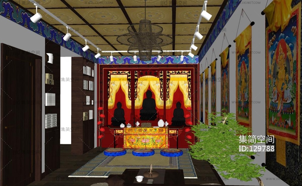 中式佛堂 su草图模型下载 [模型ID:129788]