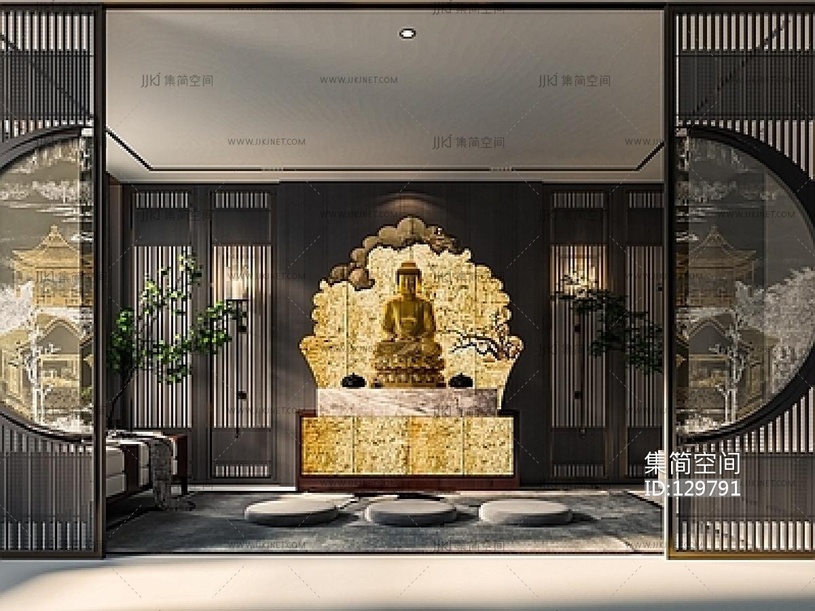 新中式佛堂 su草图模型下载 [模型ID:129791]