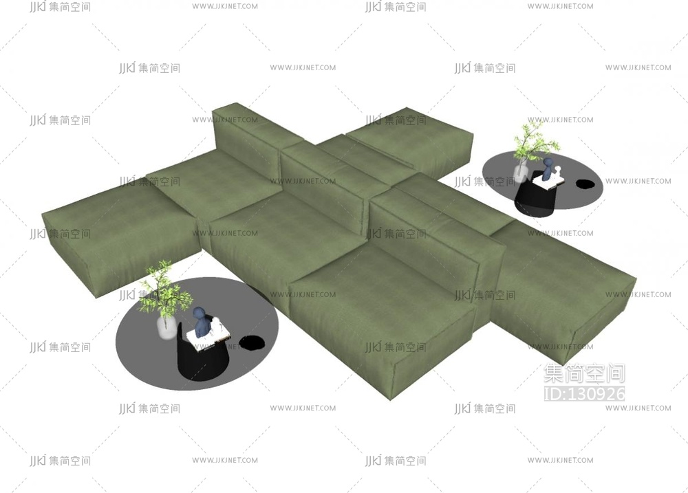 现代办公休闲沙发沙,公共座椅拼 su草图模型下载 [模型ID:130926]