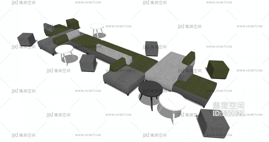 现代办公休闲沙发公共座椅 su草图模型下载 [模型ID:130929]