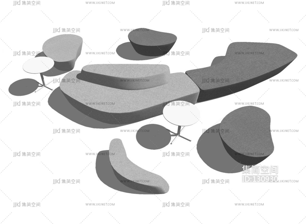现代休闲办公沙发组合沙发区公共座椅 su草图模型下载 [模型ID:130930]