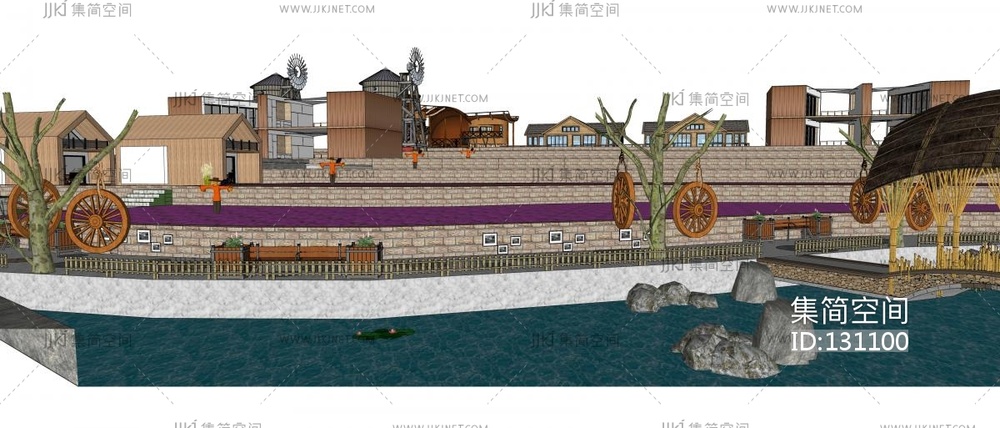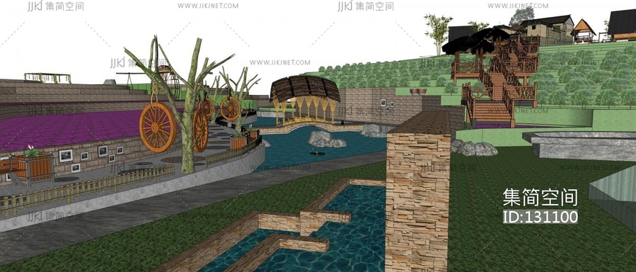 乡村滨水景观 (1) su草图模型下载 [模型ID:131100]