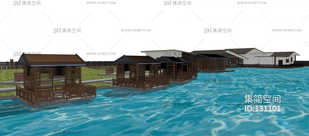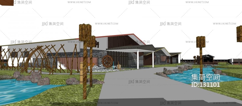 乡村滨水景观 su草图模型下载 [模型ID:131101]