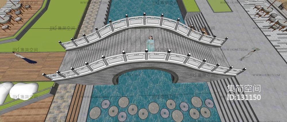 中心拱桥配景 su草图模型下载 [模型ID:131150]