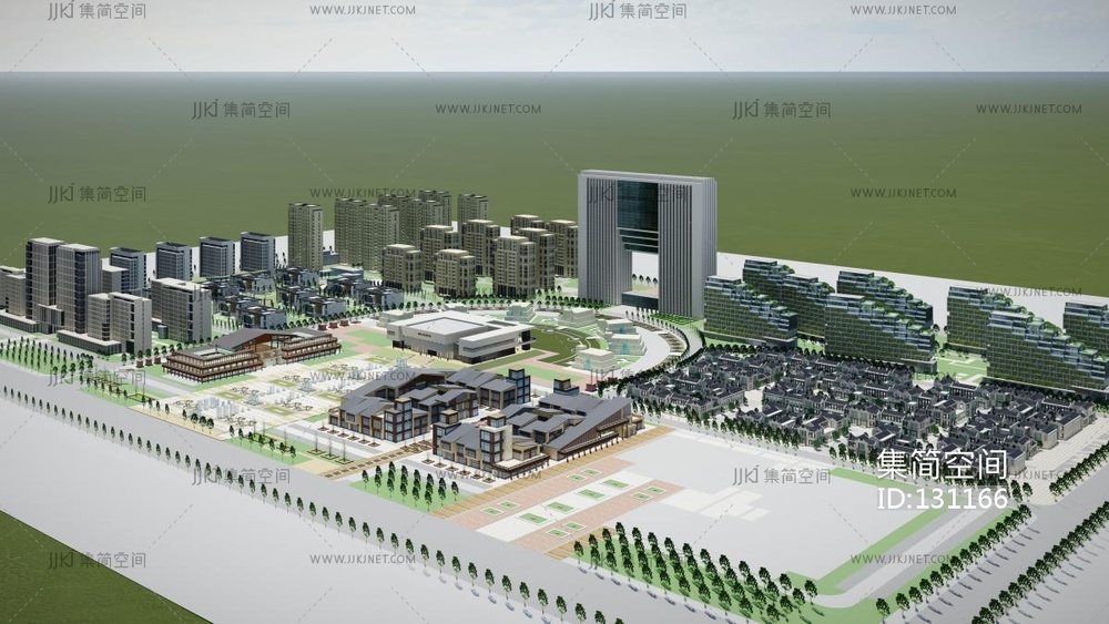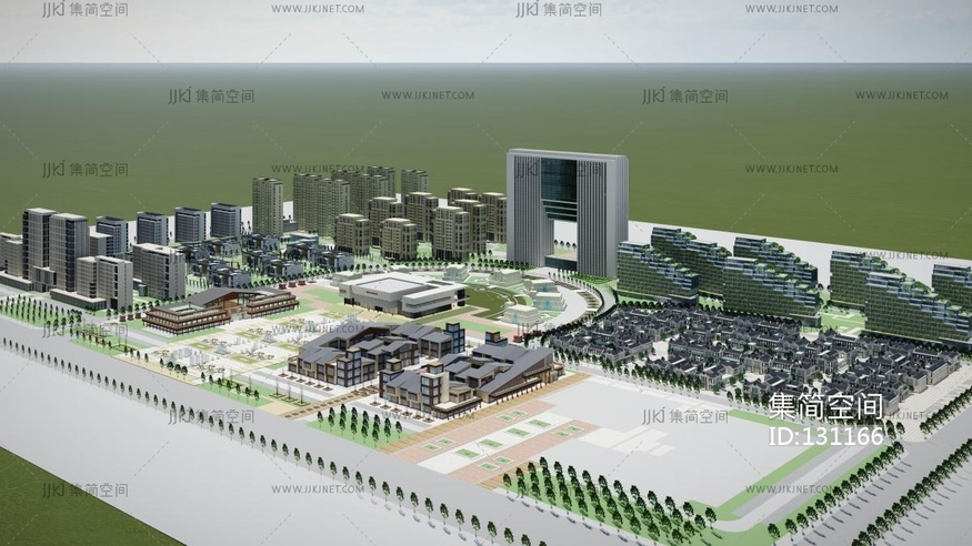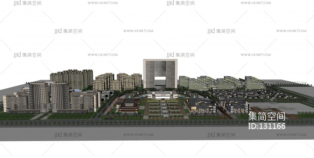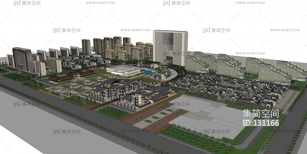 现代鸟瞰图城市规划 (1) su草图模型下载