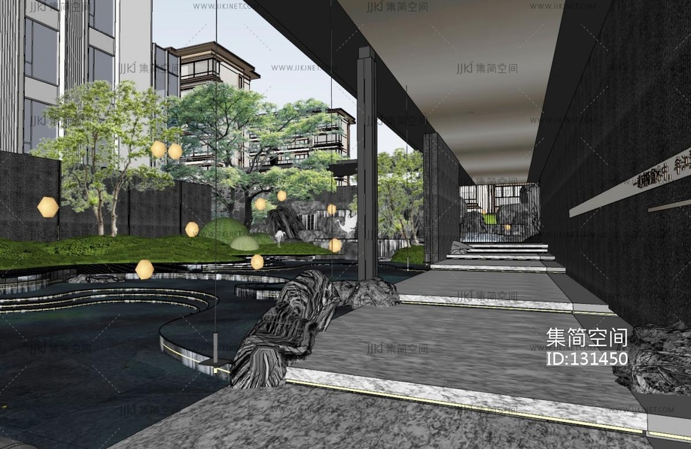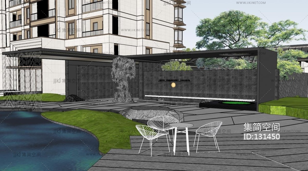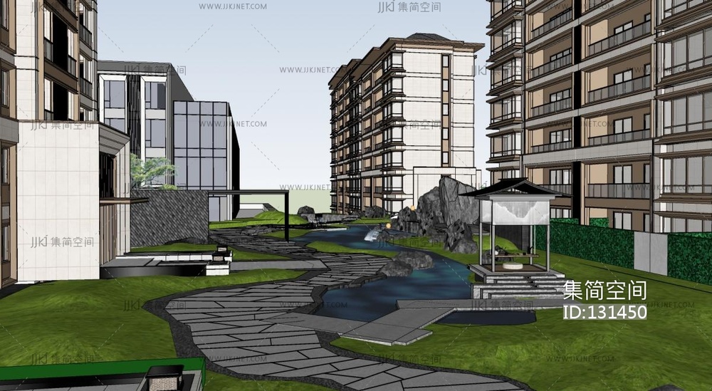 现代小区住宅景观,廊架SU模型su草图模型下载