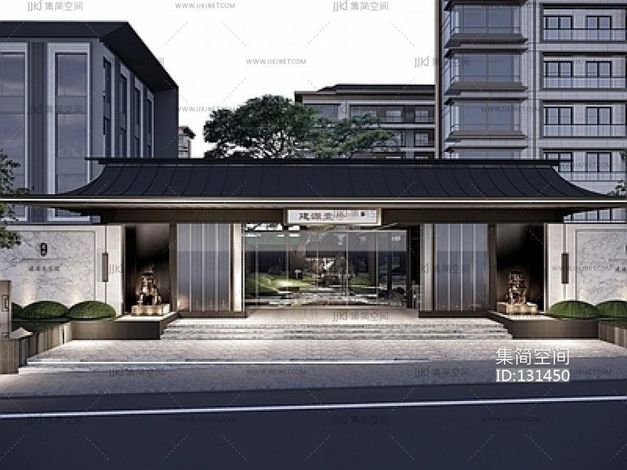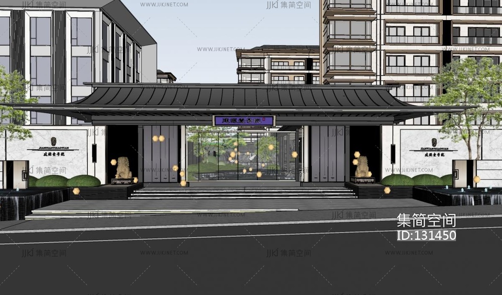 融创壹号现代小区景观,入口大门景观规划 su草图模型下载