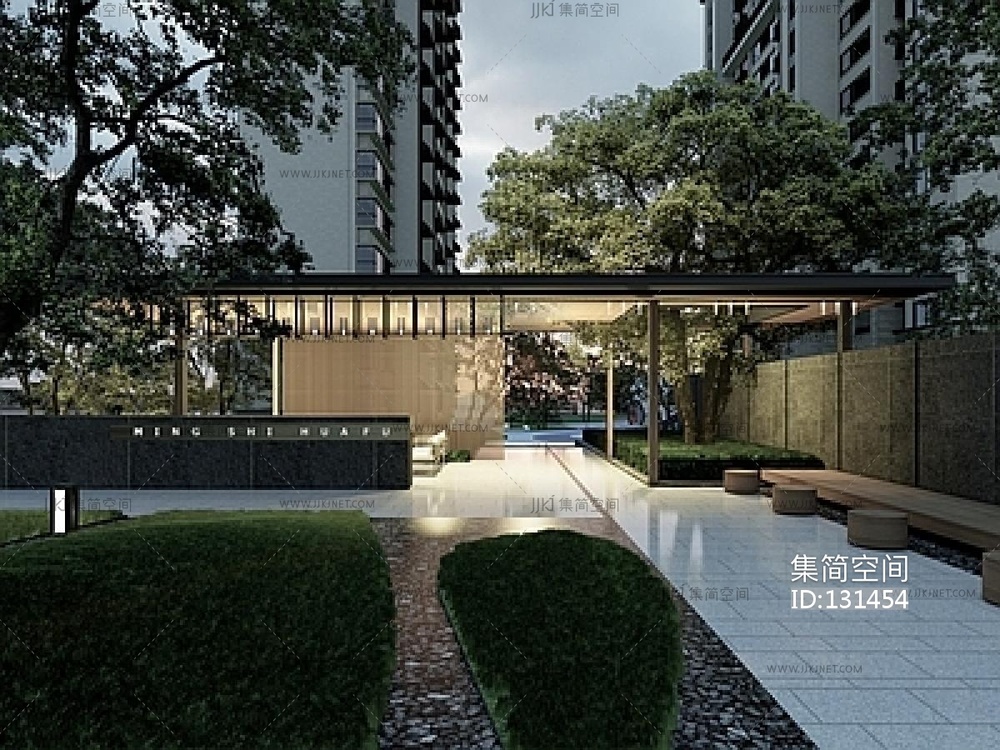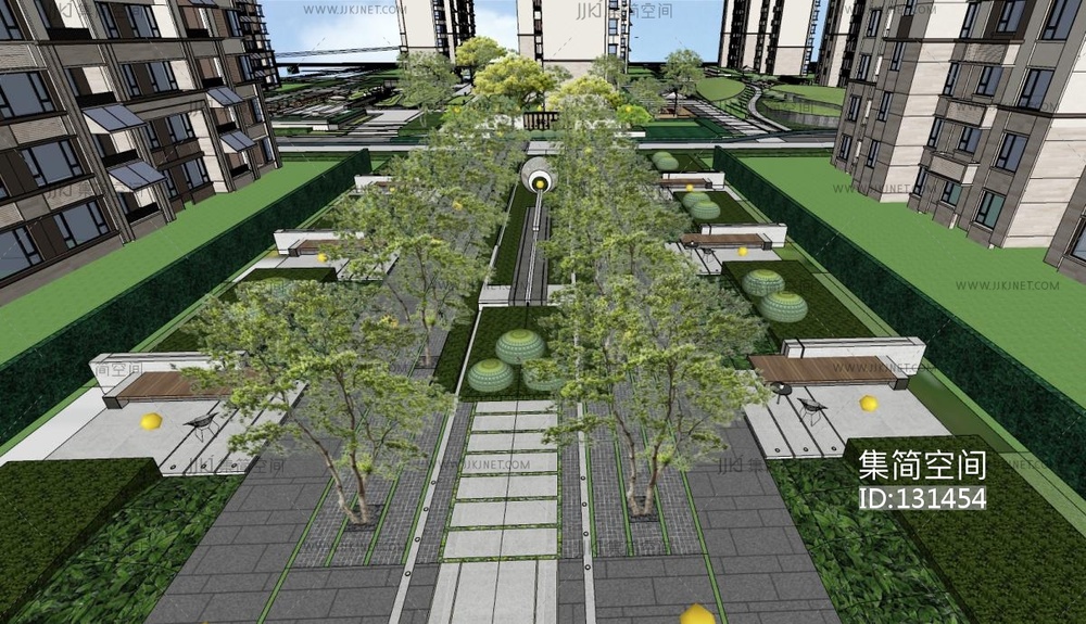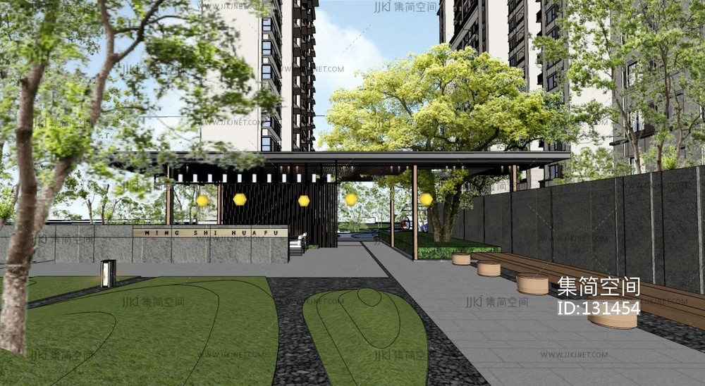 现代小区住宅景观,廊架SU模型su草图模型下载