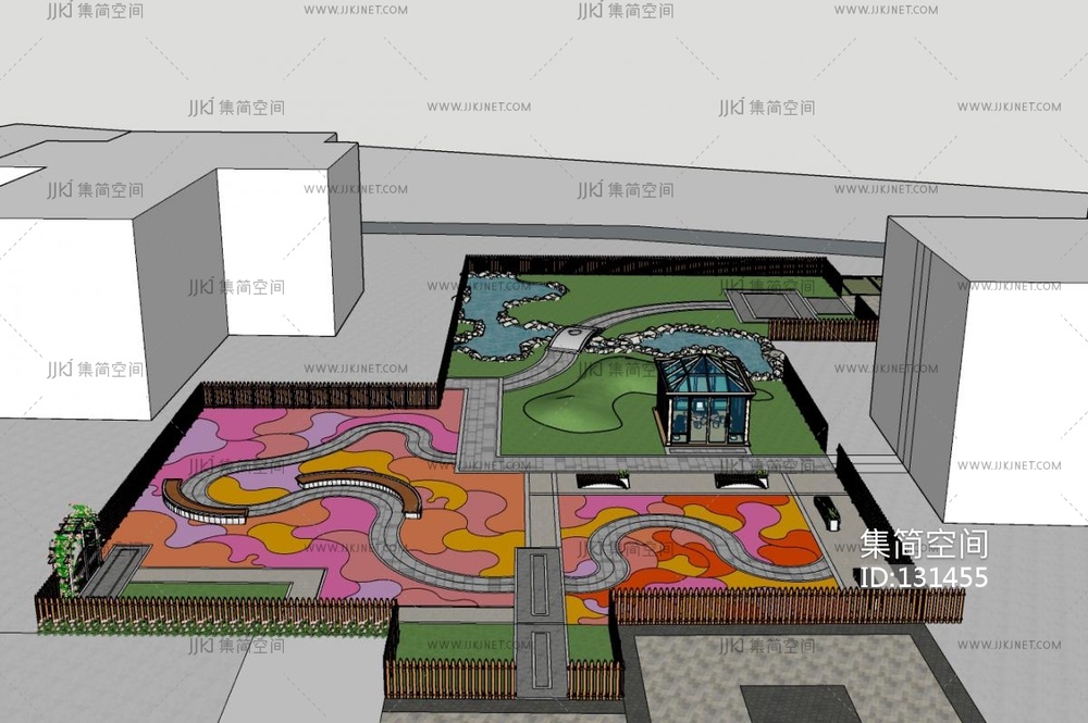 现代居住区景观,小区景观 su草图模型下载 [模型ID:131455]