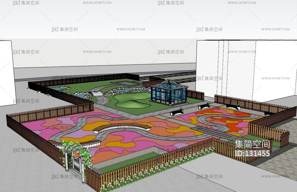 现代小区住宅景观,廊架SU模型su草图模型下载