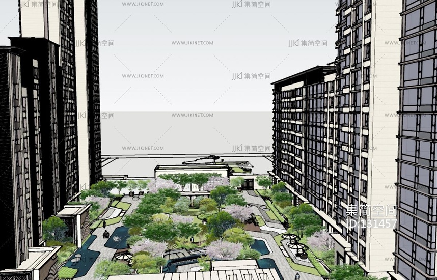 现代居住区景观规划 su草图模型下载 [模型ID:131457]