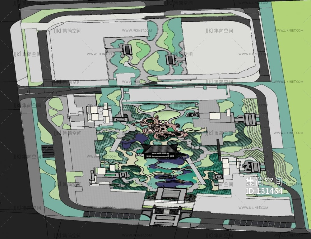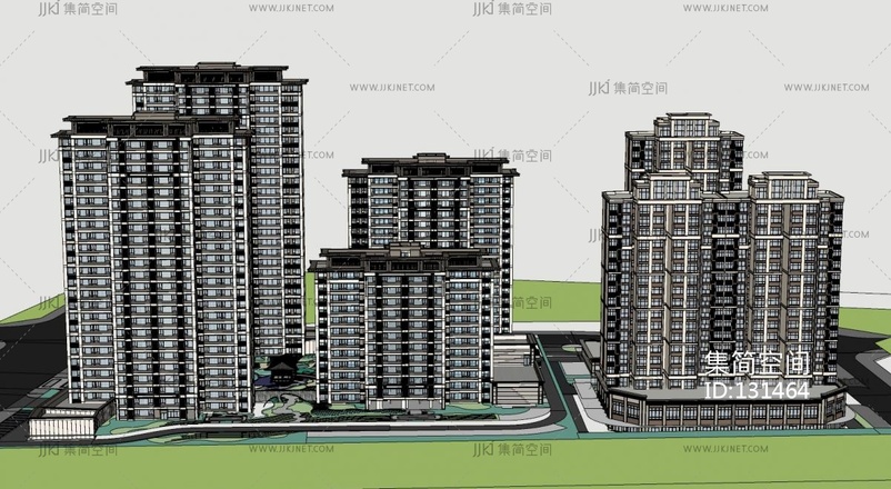 新中式住宅小区景观 su草图模型下载 [模型ID:131464]