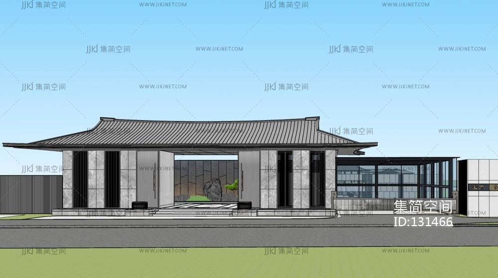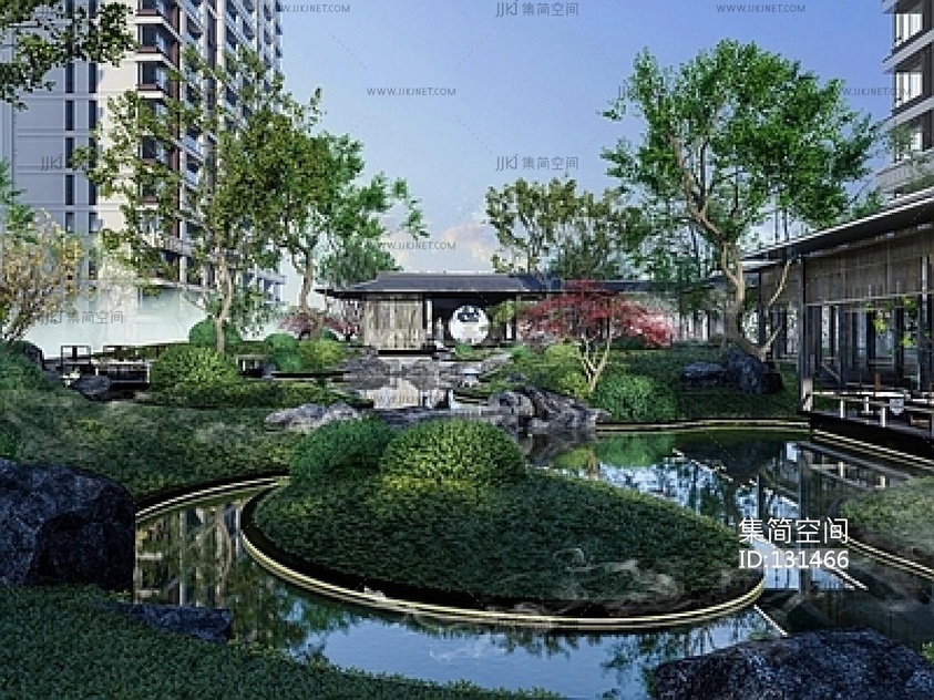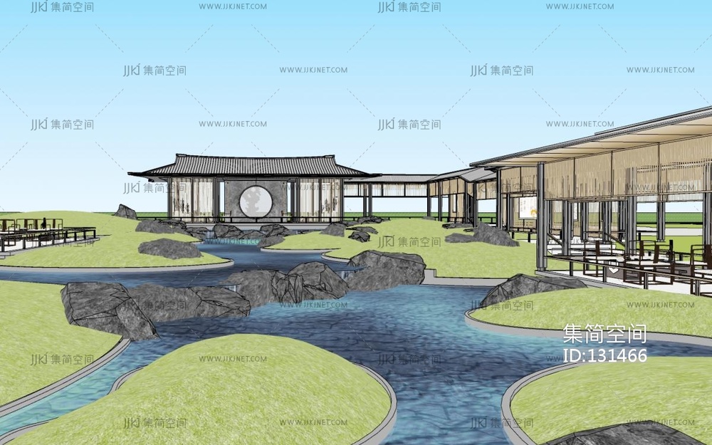 新中式住宅景观,小区水系景观 su草图模型下载 [模型ID:131466]