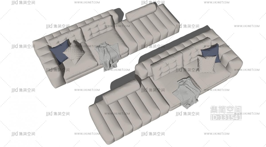 侘寂风多人沙发su草图模型下载