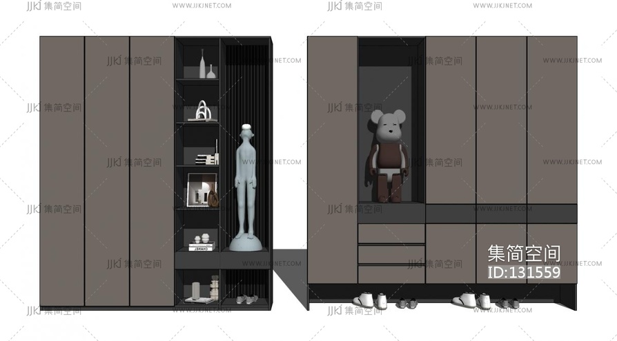 现代置物架衣帽鞋子包包 su草图模型su草图模型下载