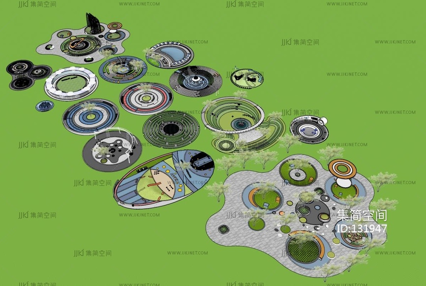 公园广场景观 su草图模型下载 [模型ID:131947]