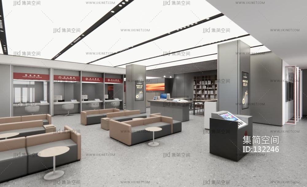 现代银行服务大厅 su草图模型下载 [模型ID:132246]