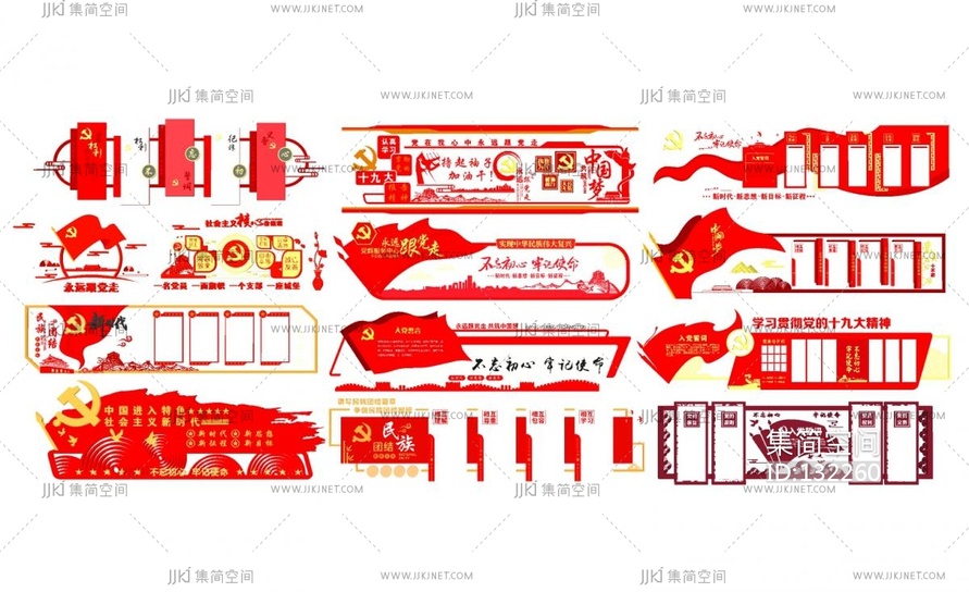 现代党建文化墙 党 su草图模型下载 [模型ID:132260]