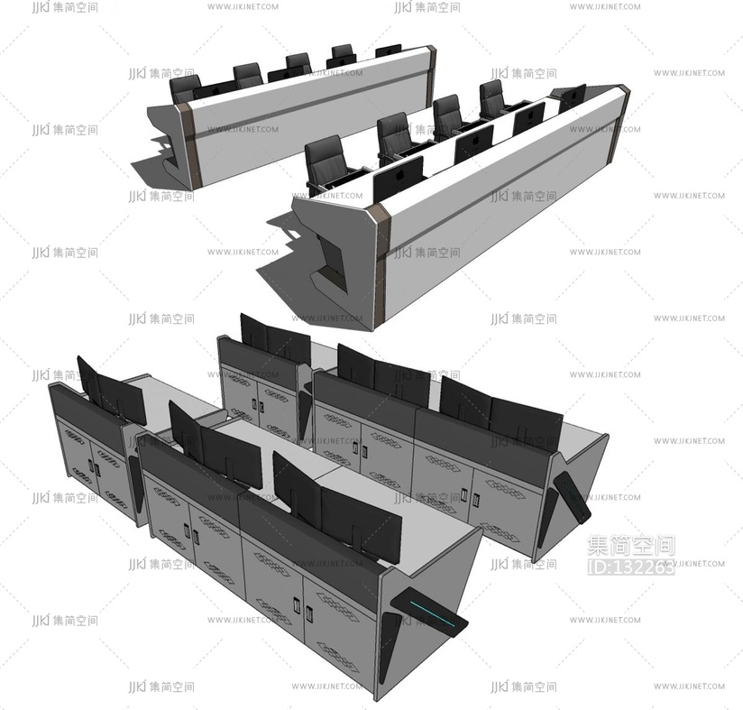 现代控制台 监控台指挥中心su模型 su草图模型下载 [模型ID:132263]