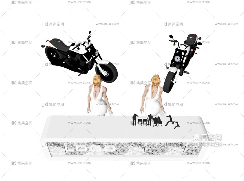 摩托车 机车美女人物su模型 su草图模型下载 [模型ID:132348]