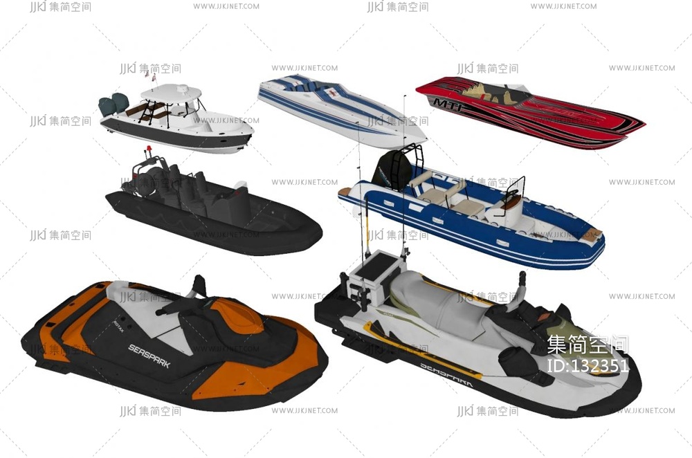 汽艇 皮艇 su模型 su草图模型下载 [模型ID:132351]