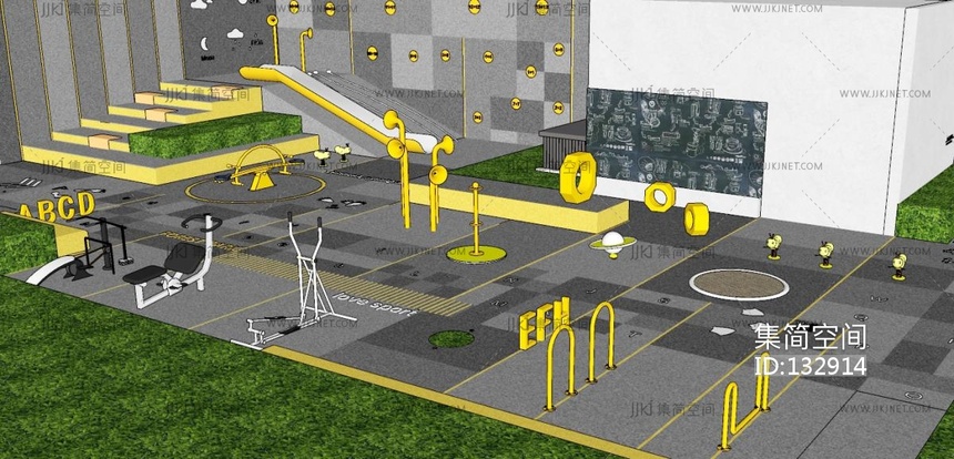 现代儿童活动场地,运动健身器材 su草图模型下载 [模型ID:132914]
