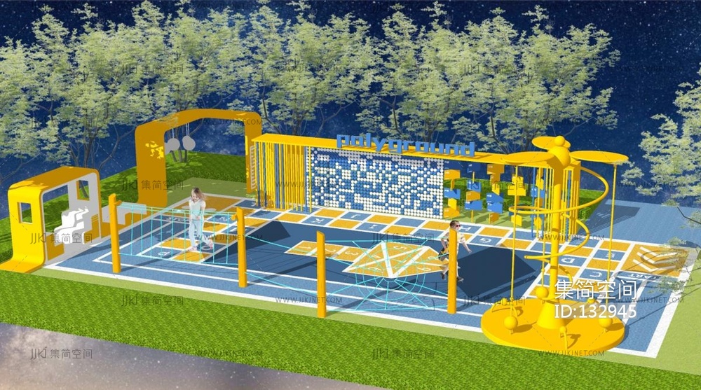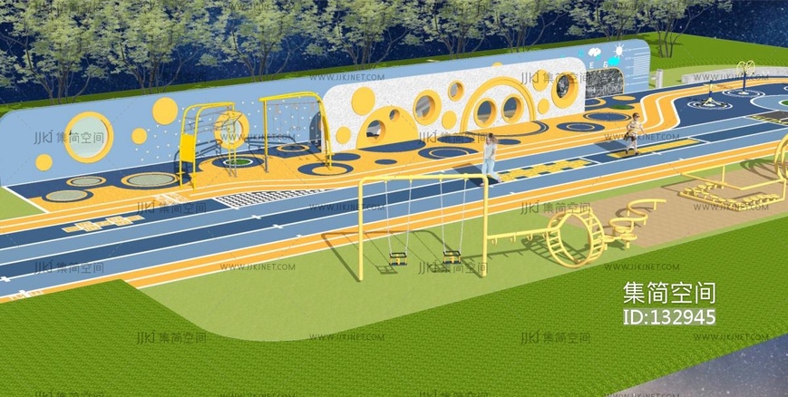 儿童游乐区 小区运动 锻炼 器材 滑滑梯 设计 院子 社区 运动区su草图模型下载