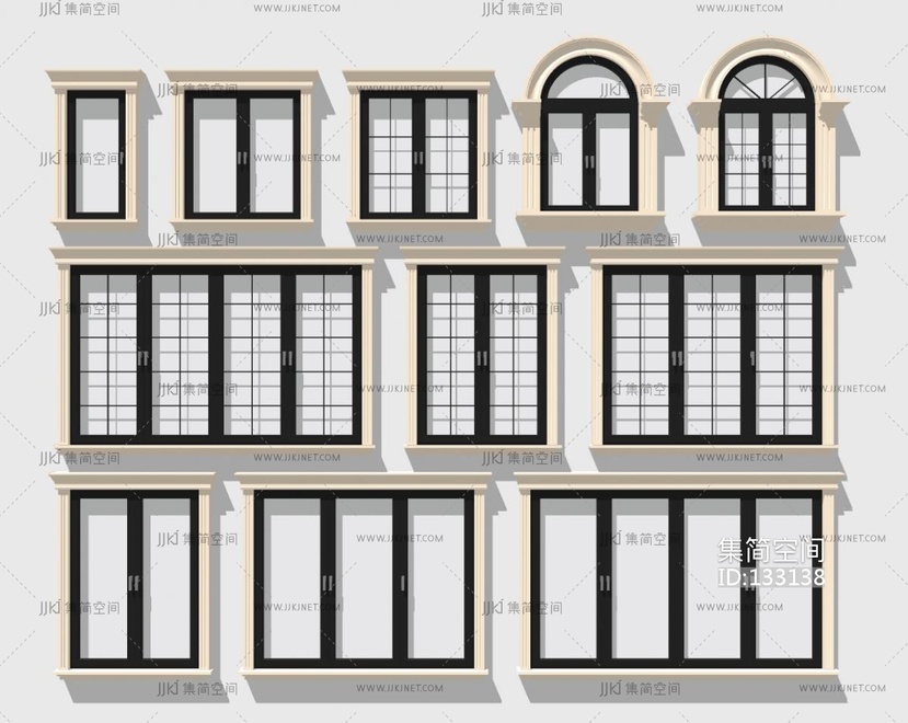 欧式法式建筑窗,窗户 su草图模型下载 [模型ID:133138]