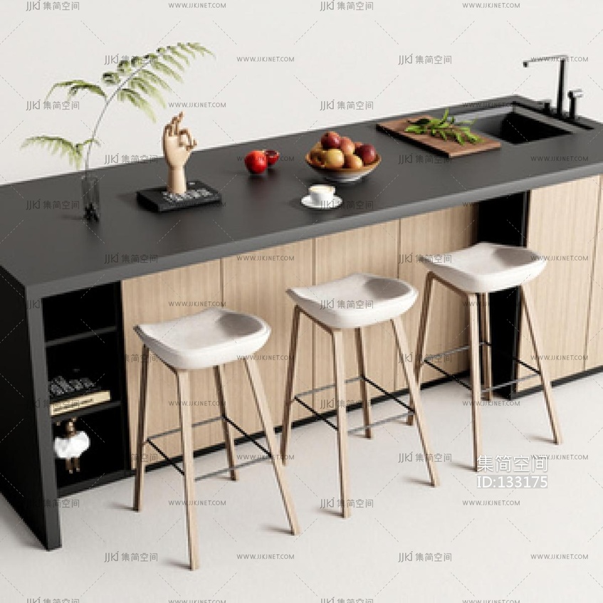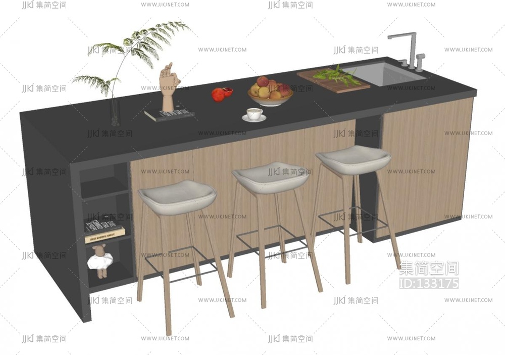 现代厨房岛台中岛 su草图模型下载 [模型ID:133175]