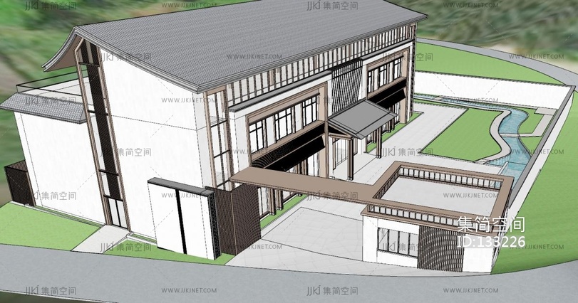 新中式养老院 su草图模型下载 [模型ID:133226]