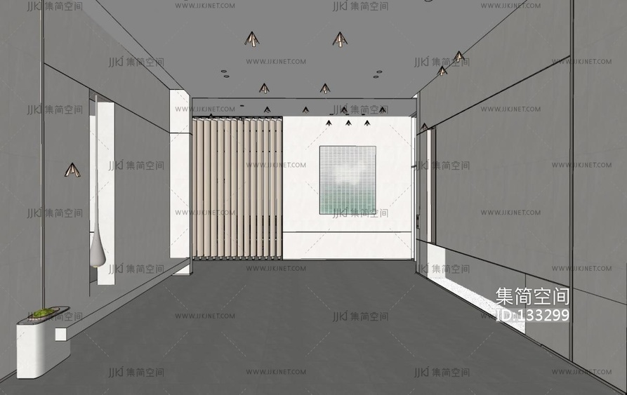 日式商业公共空间走廊su草图模型下载