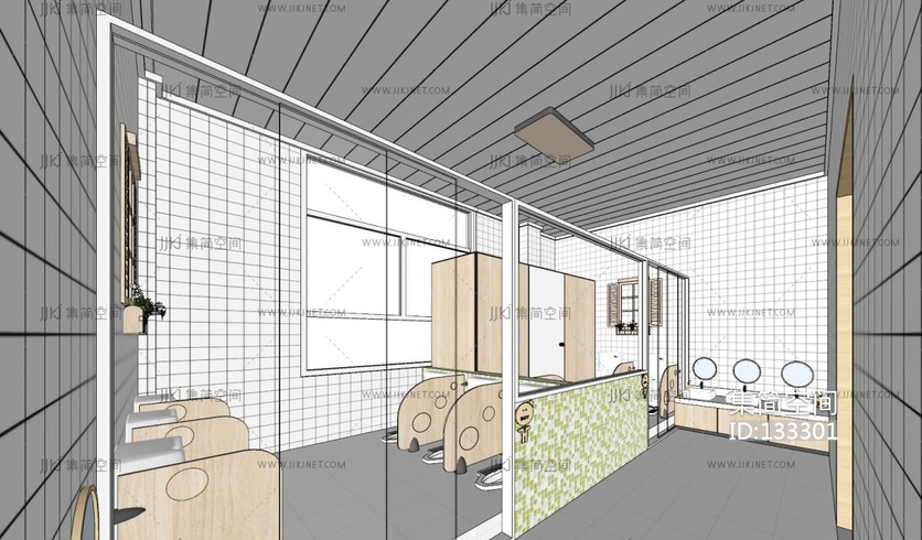 现代幼儿园卫生间 su草图模型下载 [模型ID:133301]
