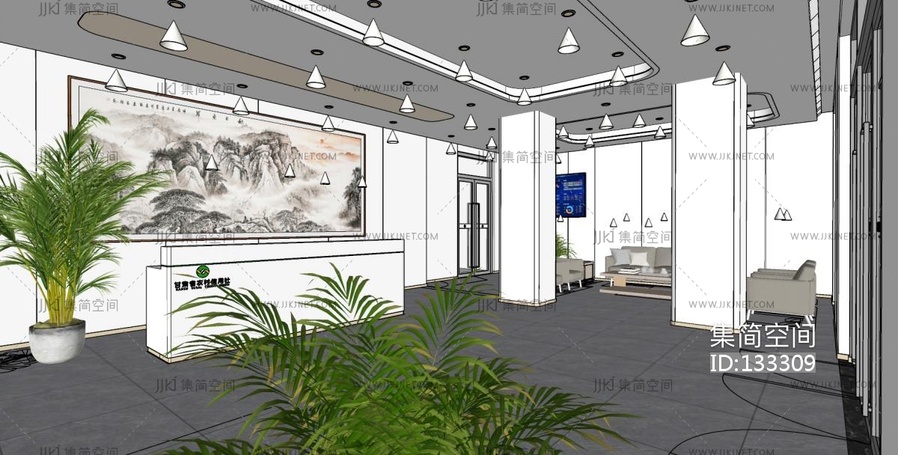 现代农村信用社大堂 su草图模型下载 [模型ID:133309]