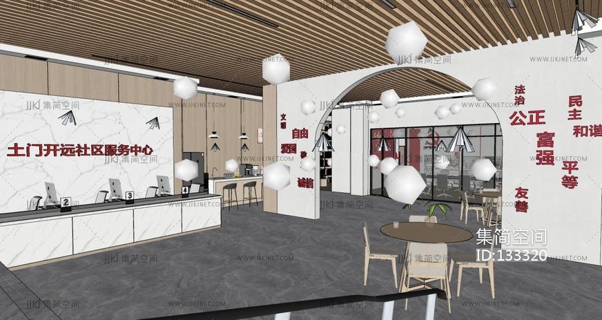 现代便民服务大厅su草图模型下载