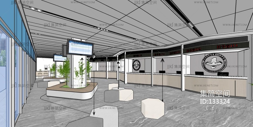 现代医院收费大厅 su草图模型下载 [模型ID:133324]