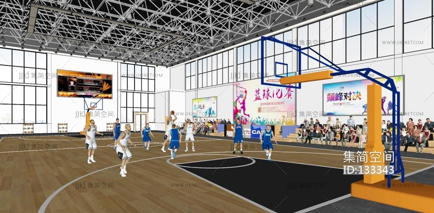 现代篮球场,体育馆 su草图模型下载 [模型ID:133343]