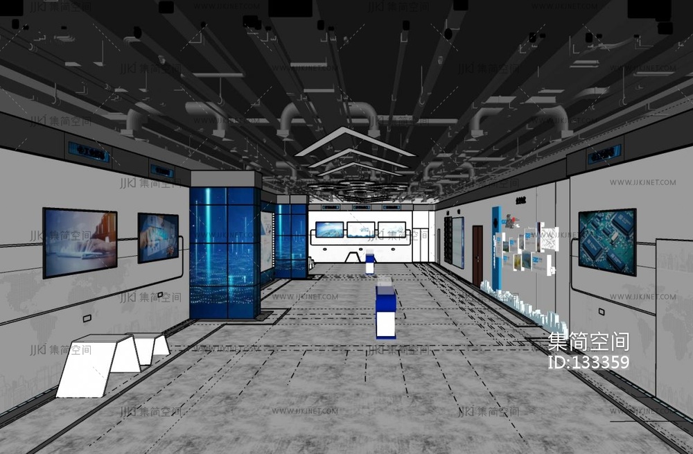 现代科技联通展厅 su草图模型下载 [模型ID:133359]