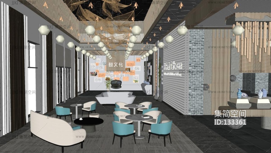 新中式文化展厅 su草图模型下载 [模型ID:133361]