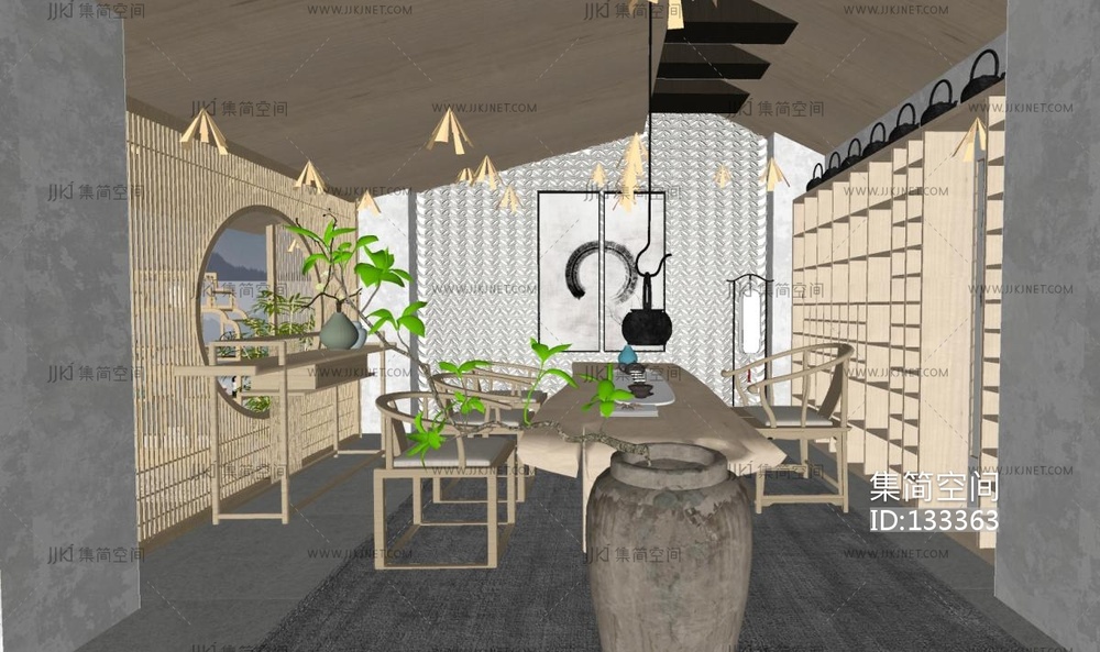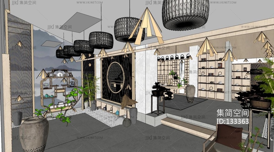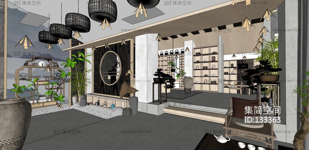 新中式茶文化展厅 su草图模型下载 [模型ID:133363]