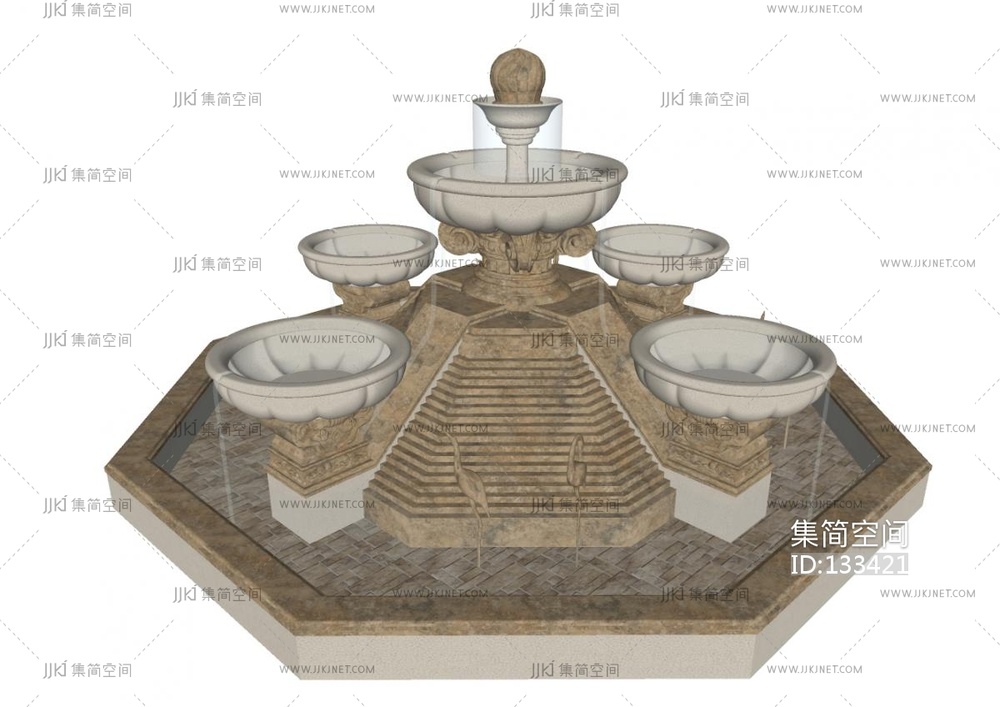 欧式景观喷泉水景su模型 su草图模型下载 [模型ID:133421]