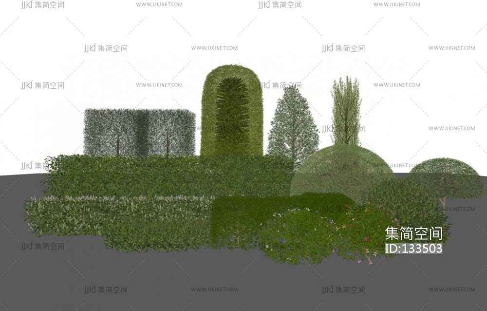 灌木_灌木球_花草组合SU模型su草图模型下载