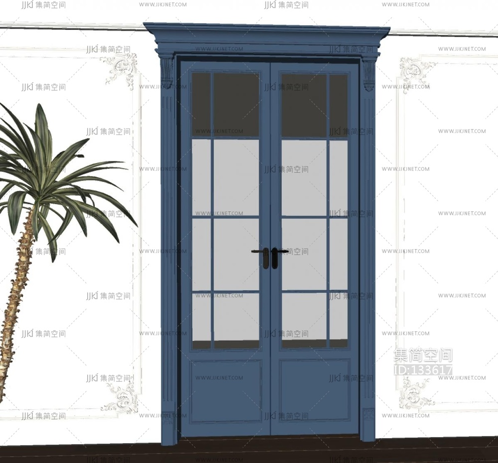法式玻璃双开门su模型 su草图模型下载 [模型ID:133617]