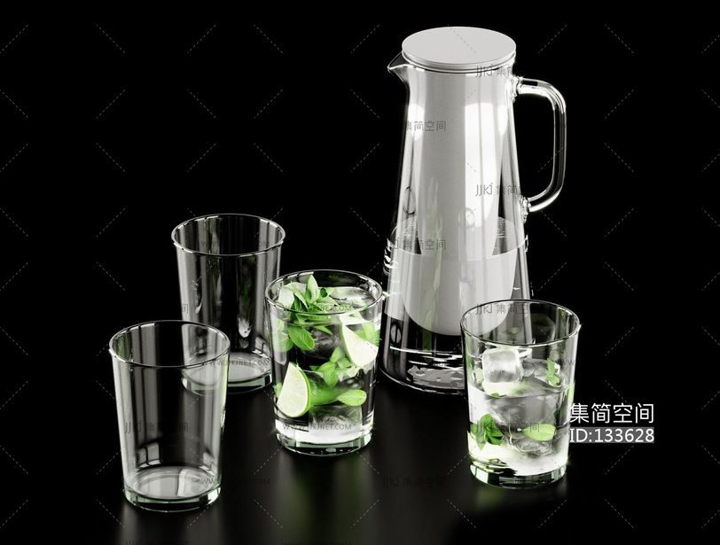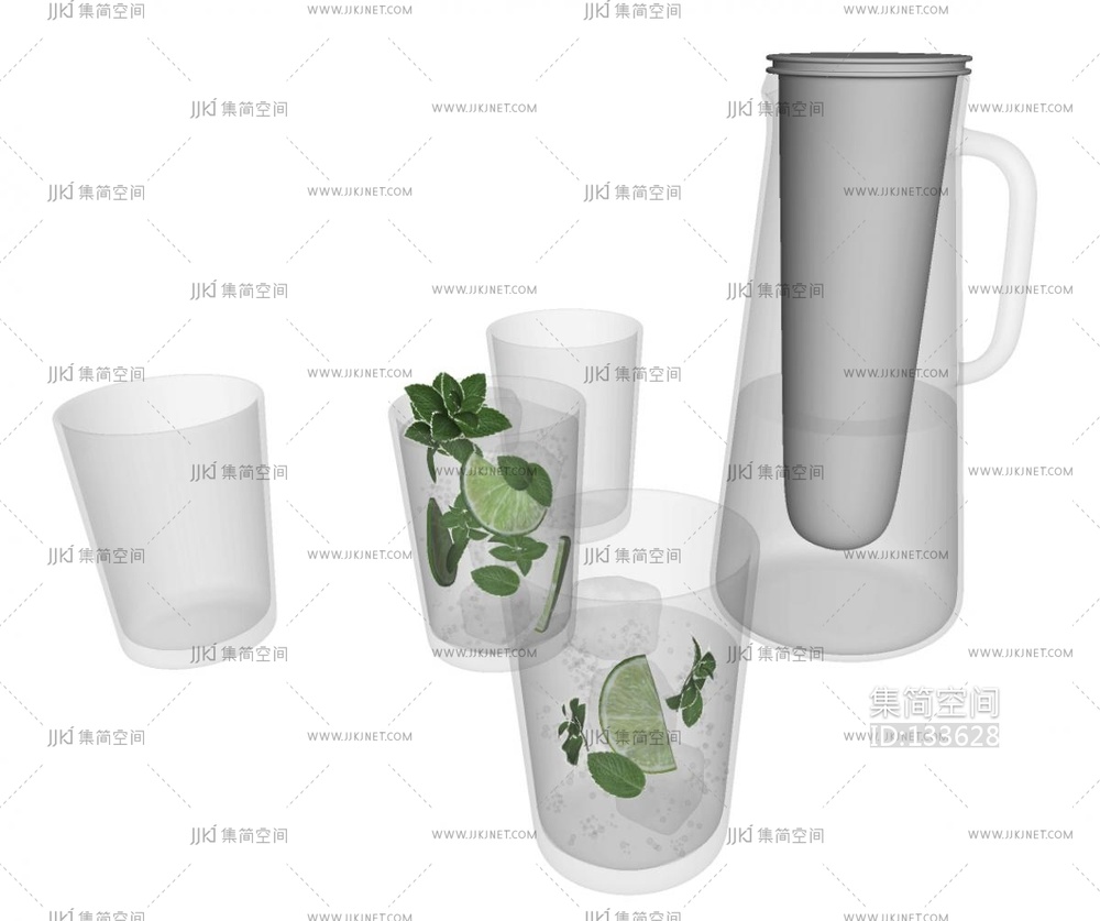 玻璃水壶 水杯su模型 su草图模型下载 [模型ID:133628]