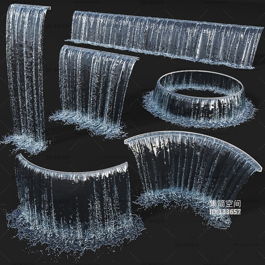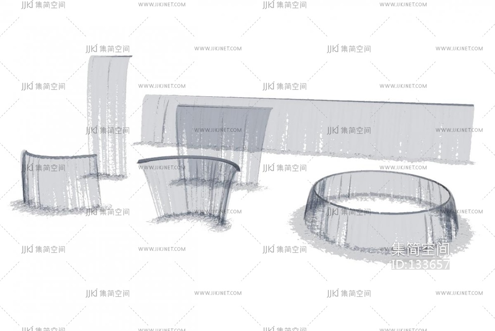 水景瀑布小品su模型 su草图模型下载 [模型ID:133657]