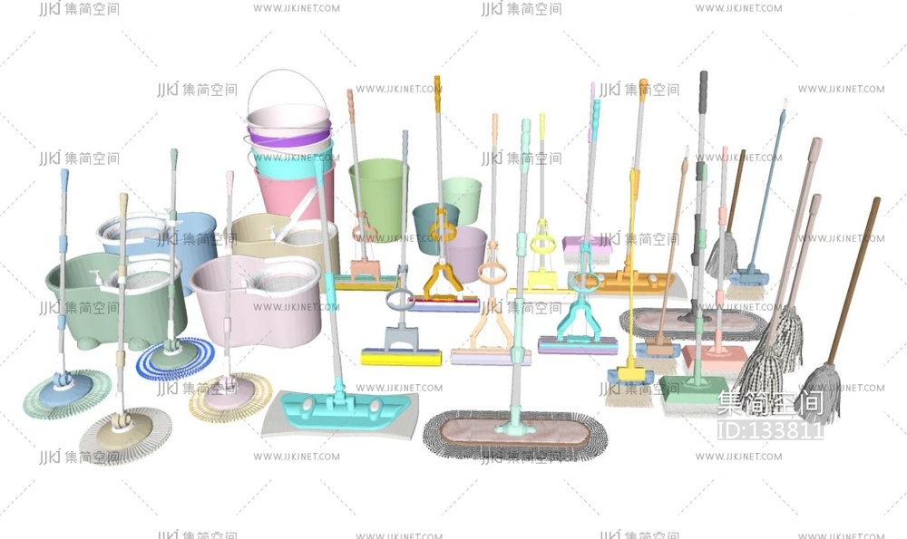 现代垃圾桶拖布,扫把,墩布,清洁用品su模型 su草图模型下载 [模型ID:133811]