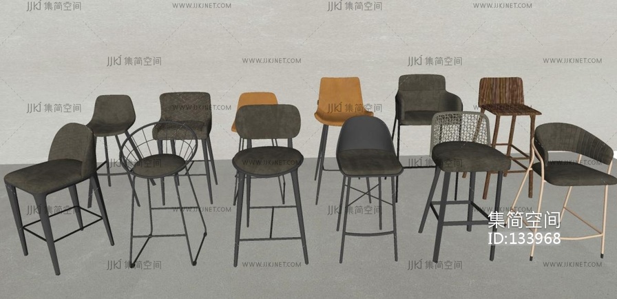 现代吧台椅 吧凳su模型 su草图模型下载 [模型ID:133968]